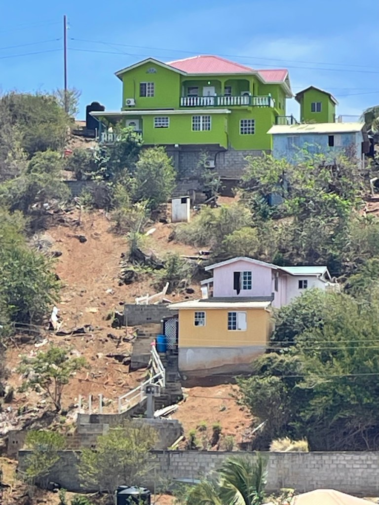 Back in 2024, Hurricane Beryl ripped through the lower part of the Caribbean, causing major destruction on several islands, including Canouan. They lost 90% of their housing and the island was in rough shape. The woman who owned the gift shop gave us an excellent overview of the hurricane destruction and the subsequent rebuild of the island. She had really good photos and told us all about this one British man who took it upon himself to help restore the island. He brought in supplies and construction workers to help the locals rebuild the communities. Within 14 – 18 months, most of the work was completed!! Today the island still has the look of a post hurricane environment (small trees, lots of waste material around and a few buildings in rough shape) but it also has recovered a great deal.