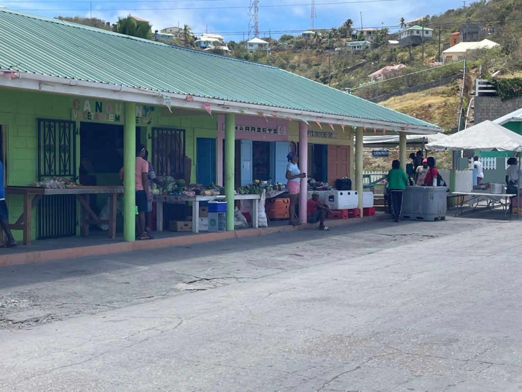 Before I talk about the town, there’s something I forgot to mention in my last post – we’ve now experienced the Caribbean “boat boy” scenario. Many cruisers have reported that some of the island in the south part of the Caribbean (basically starting in St. Lucia) have young men in boats who zoom out to meet you as you head into a bay or harbour. Boat boys offer a variety of services (help with anchoring or mooring, ice, take garbage, sell produce etc) for a price. Mostly the boat boys are polite, helpful and will take no for an answer. When we arrived at Canouan yesterday, we were greeted by a boat boy who tried to get us to take a mooring ball (which we didn’t want to do). He came back a few times asking if we wanted ice or had garbage he could take to shore for us. He was very friendly and was respectful of our no thanks.
