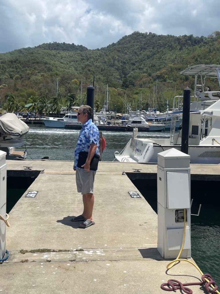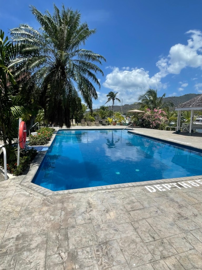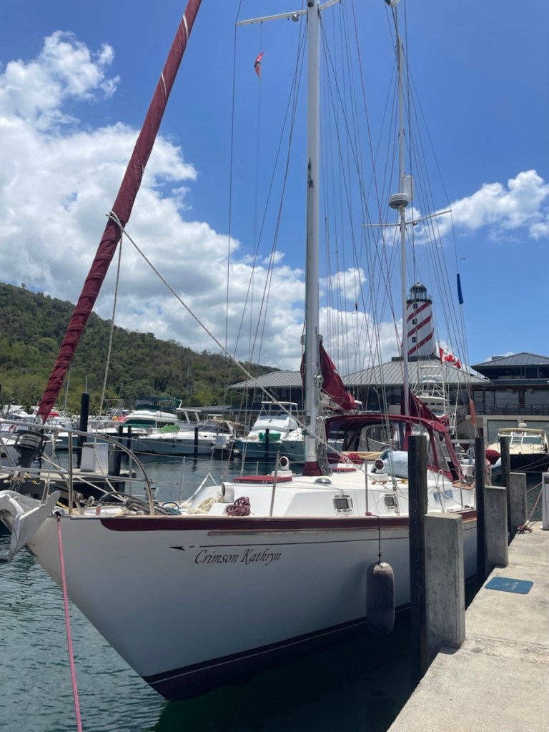 On Monday April 13th we made the short 7nm trip back to Chaguaramas and went straight to our slip at Crew’s Inn Hotel and Yachting Centre – pretty fancy name!! Well the marina matches its fancy name alright. The docks are concrete and look new. They have good facilities – laundry, showers, 2 restaurants and a pool!! So far we haven’t used the pool but we did go out for lunch on Monday!!