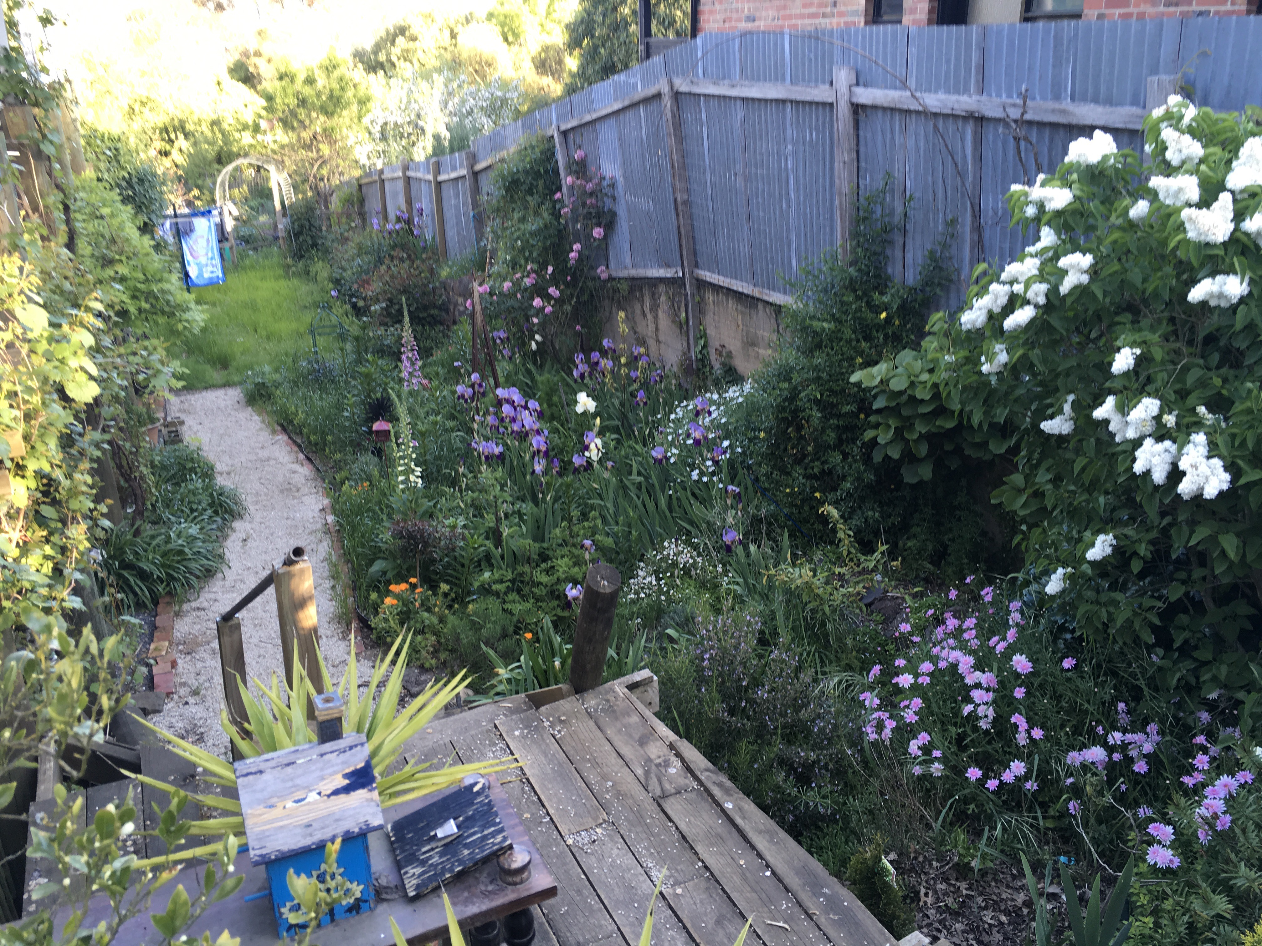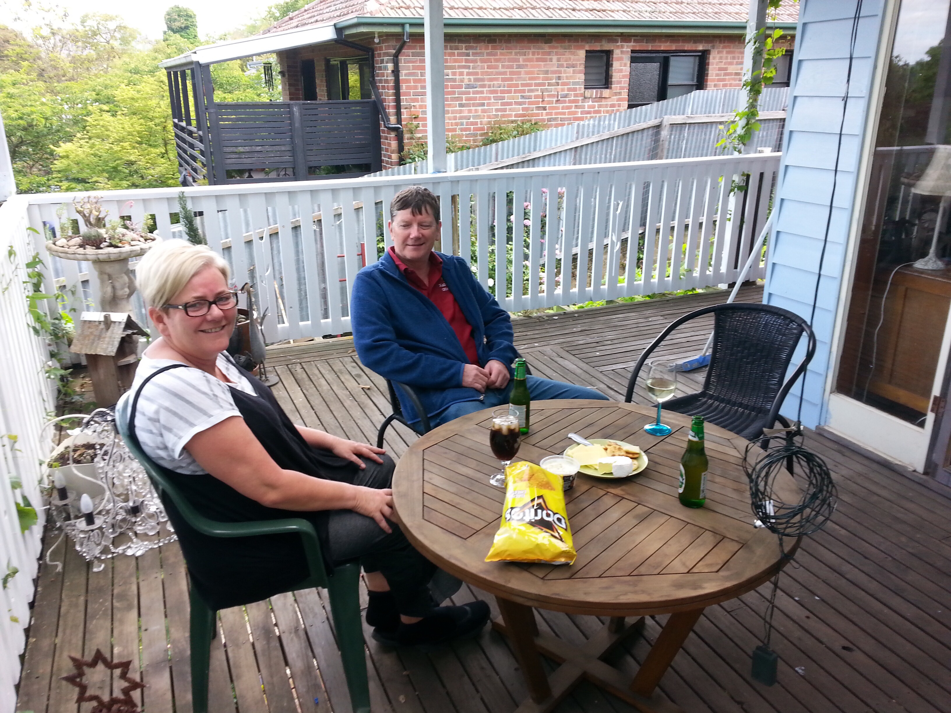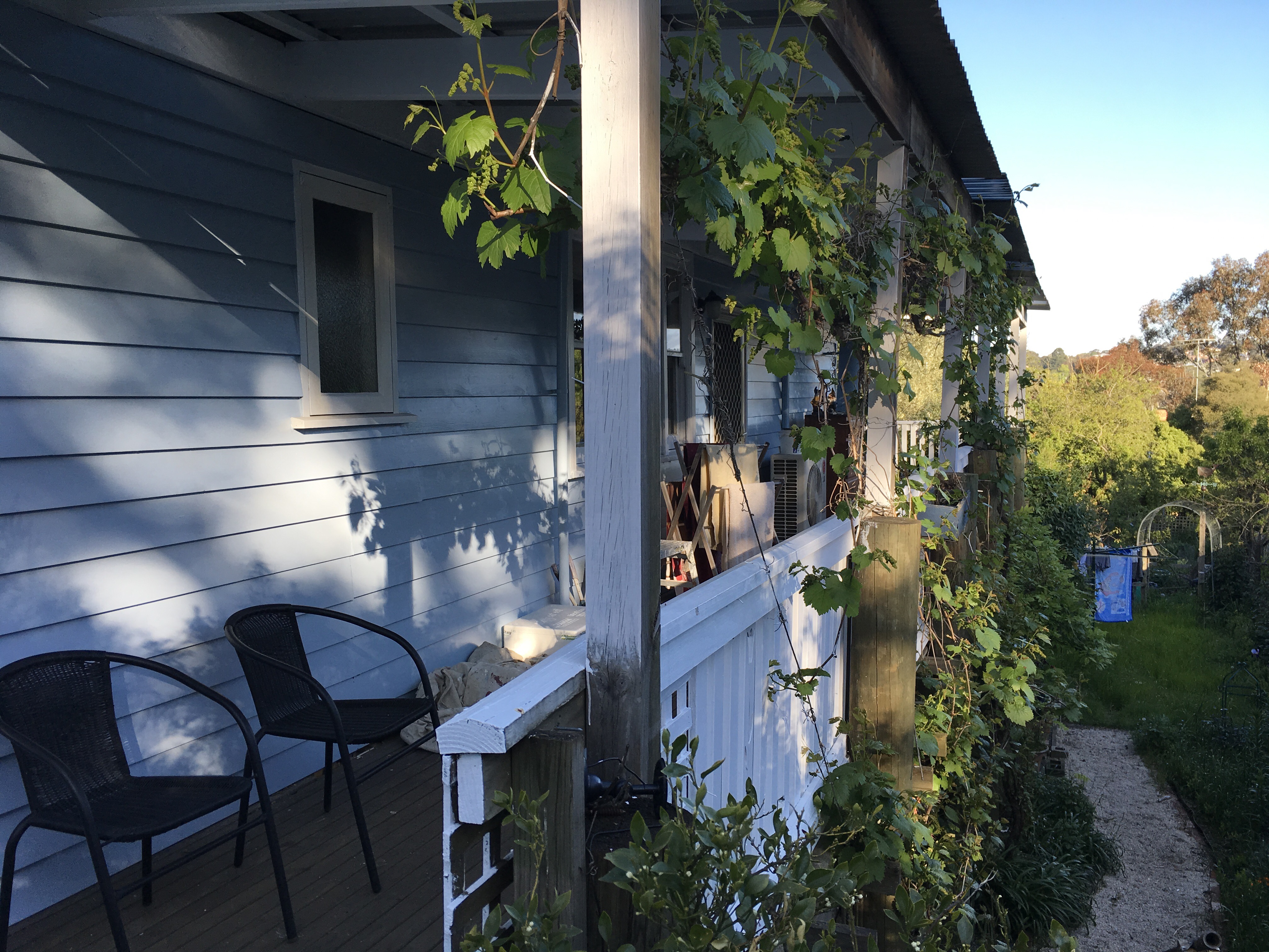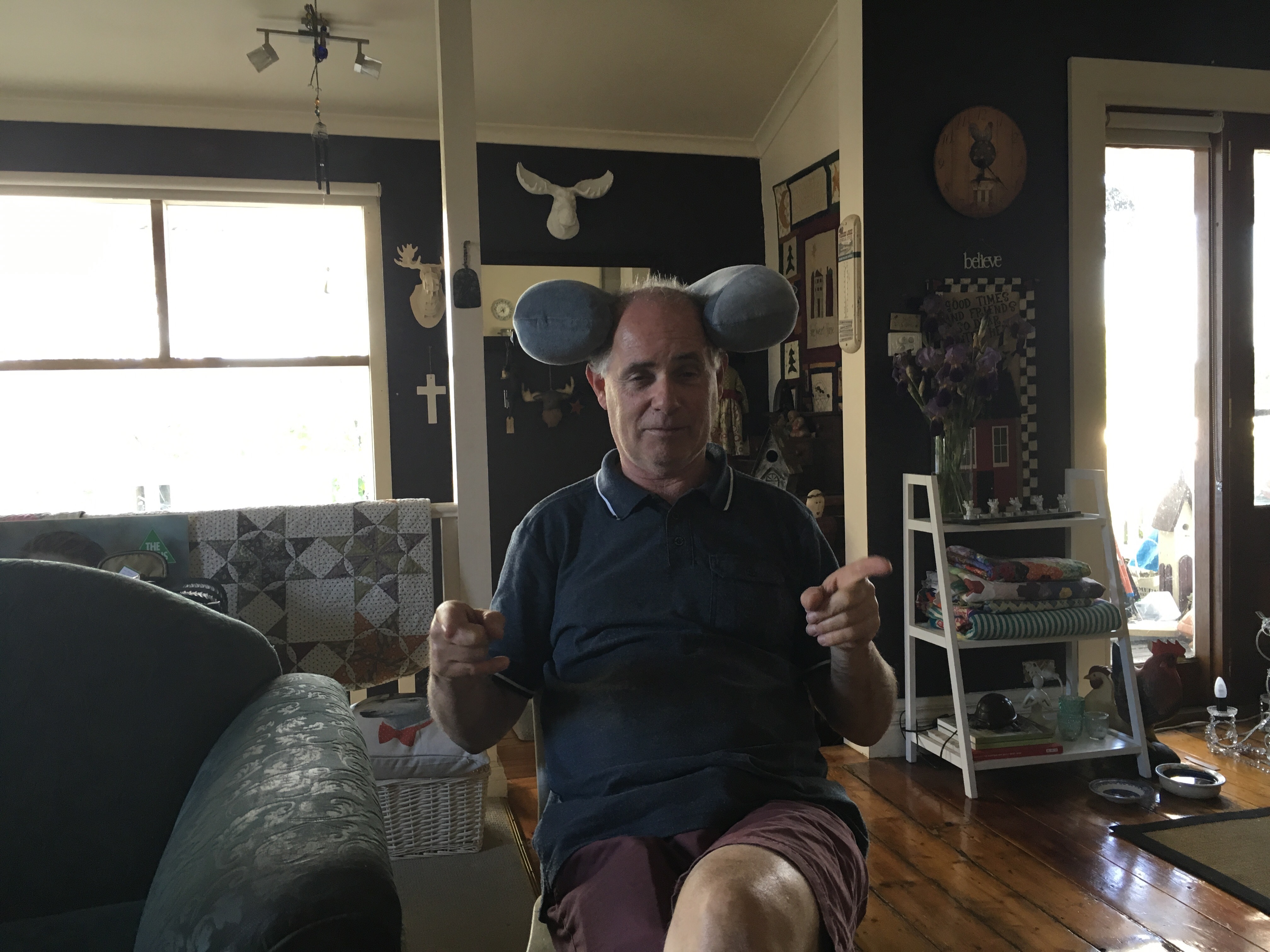 The newly renovated Skipton Street house – it’s a nice blue now and looks great.Side decking of Matt and Margie’s place.Dinner time!!Lots of blooms along the side of the Skipton St. house.Lovely garden at the front of the Matt and Margie’s house.I think that goes on your neck! It was a long flight. Matt and Jonah got home Thursday morning after staying a few days in Dubai.We visited the Ballarat Art Gallery to see the Archibald Prize finalists.A lovely walk along the “river” behind Matthew’s house.Feeling better after a few days of rest.