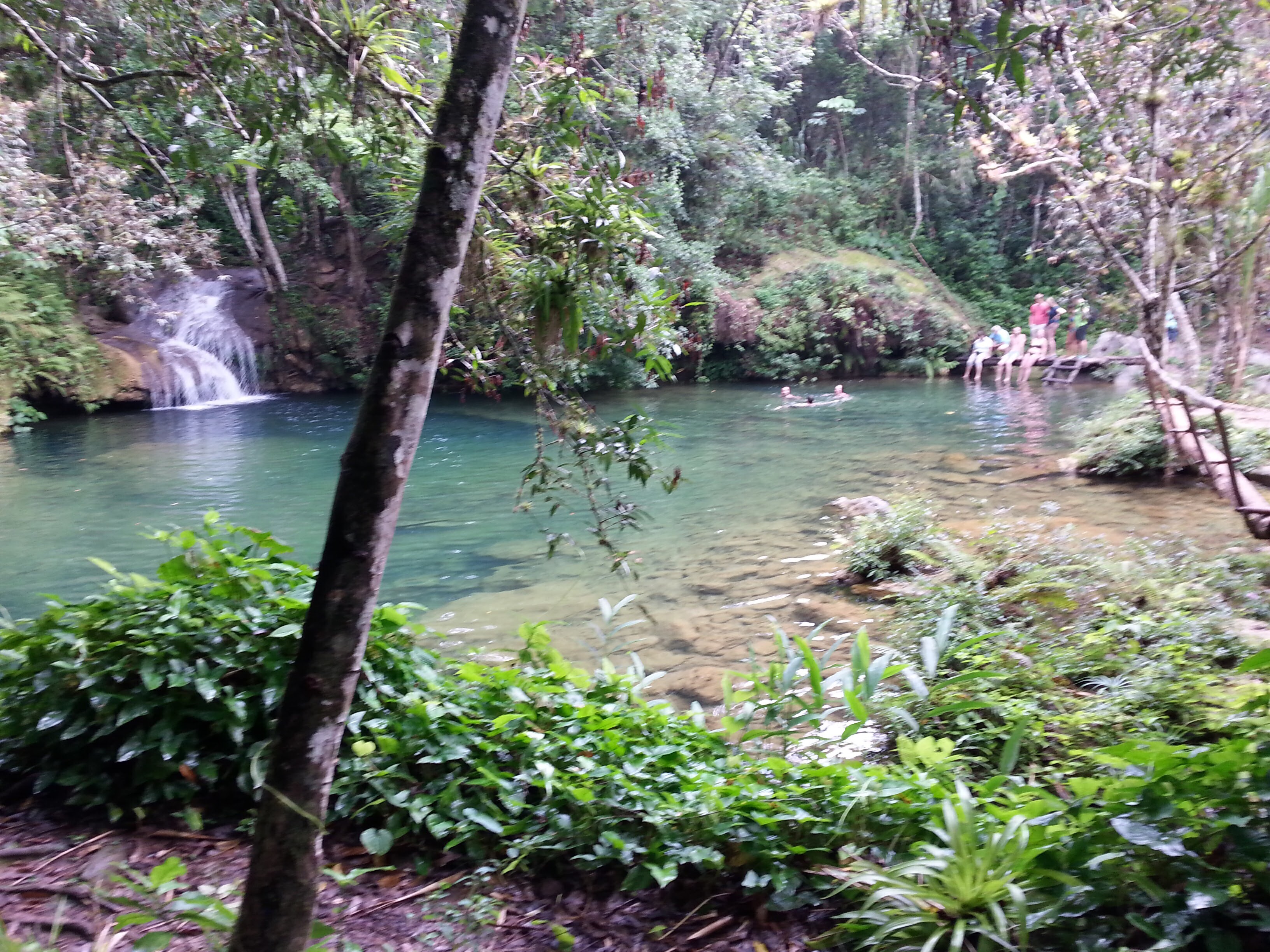 Our Varadero home! Photo taken from the pool ๐ It’s an exciting way to get on and off of the boat! A view of Trinidad from the top of the museum tower. Our rainforest hike was about 3 km and we had another awesome local guide.A very nice waterfalls.Always someone jumping into my photos ๐ Fresh water swimming hole. It was wonderful.Local farmer is moving his crop.So many horses and wagons. Glad I’m not driving! Museum and memorial site for Che in the town of Santa Clara.