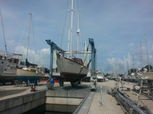 Hard to believe that we have been on the boat (with a few breaks) since the beginning of January. It's time now to say goodbye to our old friend and let her have a good rest until we return next summer. Our haul out went very smoothly. The guys at Charlotte Harbor Boat Storage know what they are doing and one guy moved CK into haul out position with a single boat hook. Very impressive.