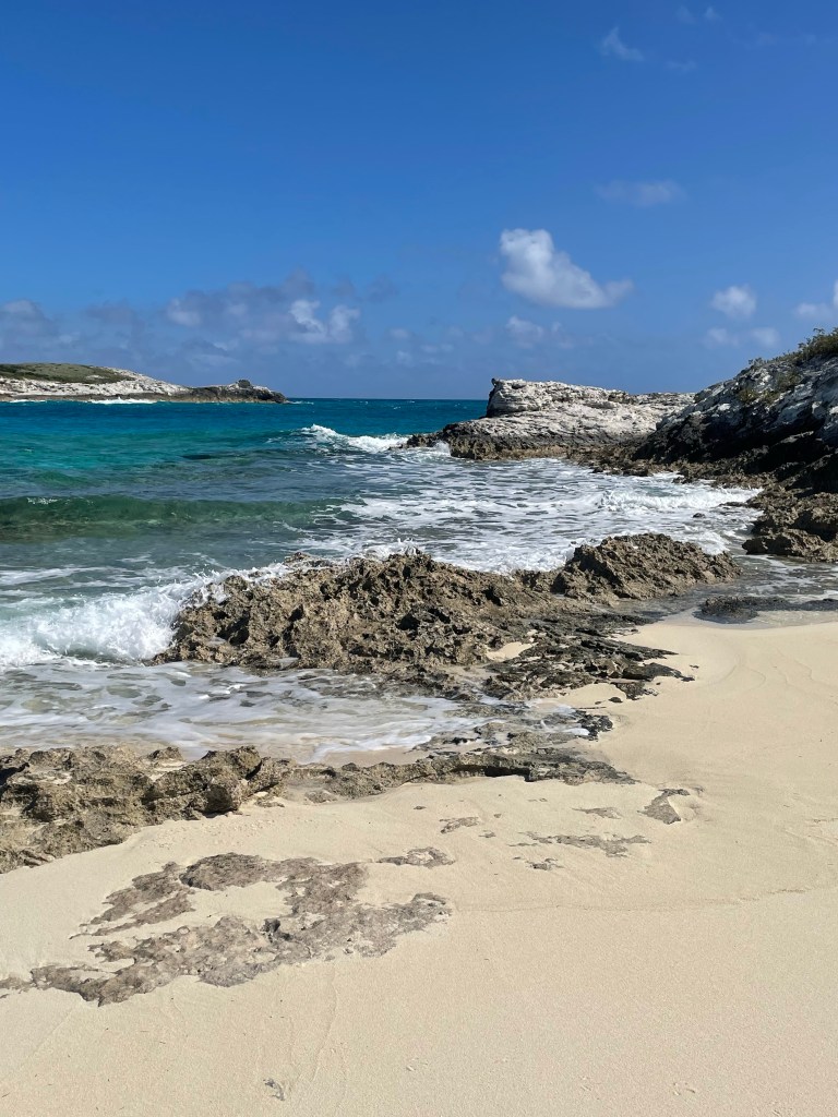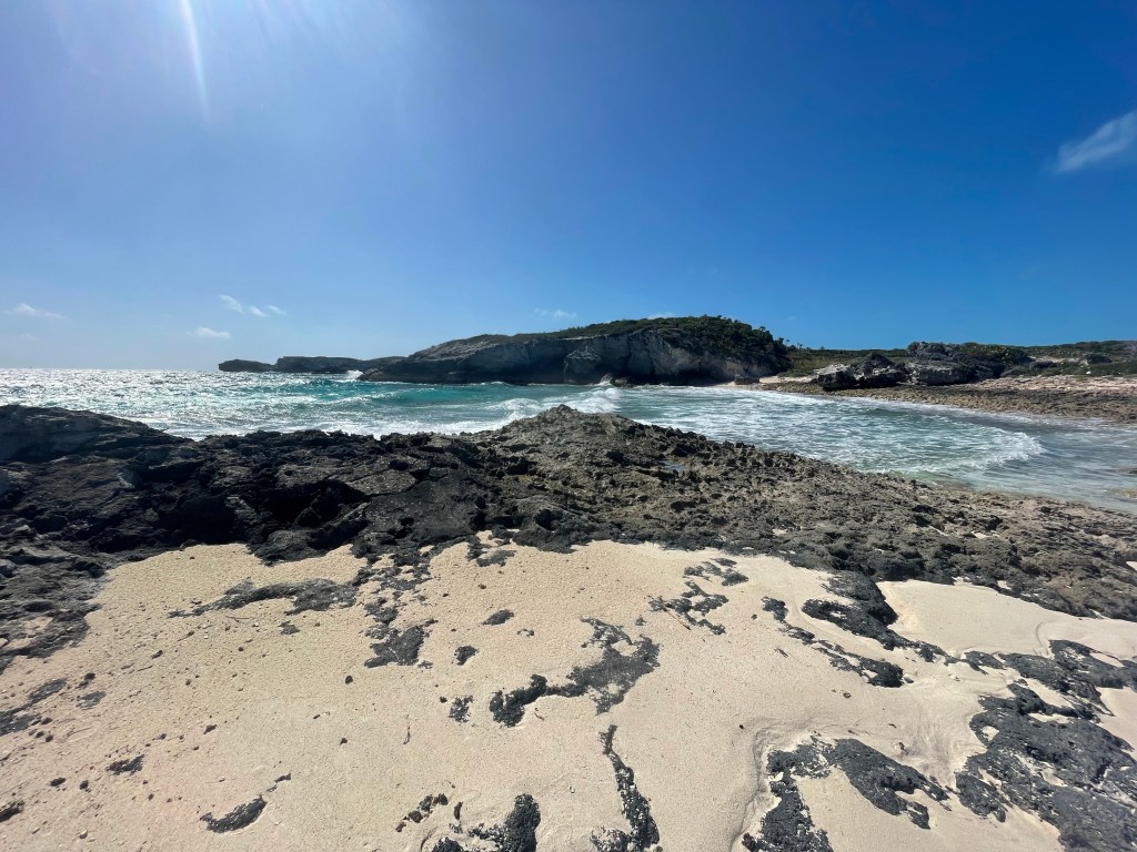 Beach at the north end of O’Briens Cay.Same beach, different view.It’s amazing how plants grow in this salty environment.The west rocky side of O’Brien Cay.Some great wave action of this side.Entrance into the interior pond on O’Briens Cay.It was fairly large and super shallow.We walked around it and in some spots it was easier to walk in the water.A large lobster shell.On our way to the Pirates Lair at Warderick Wells Cay.This trail leads to the wells and Turtle Beach.One of the fresh water wells.Turtle Beach looking towards to Exuma Banks.Saturday night’s sunset at O’Briens Cay.Rocks near Cambridge Cay.One of the Rocky Dundas islands.We swam into this cave! It was so cool!!