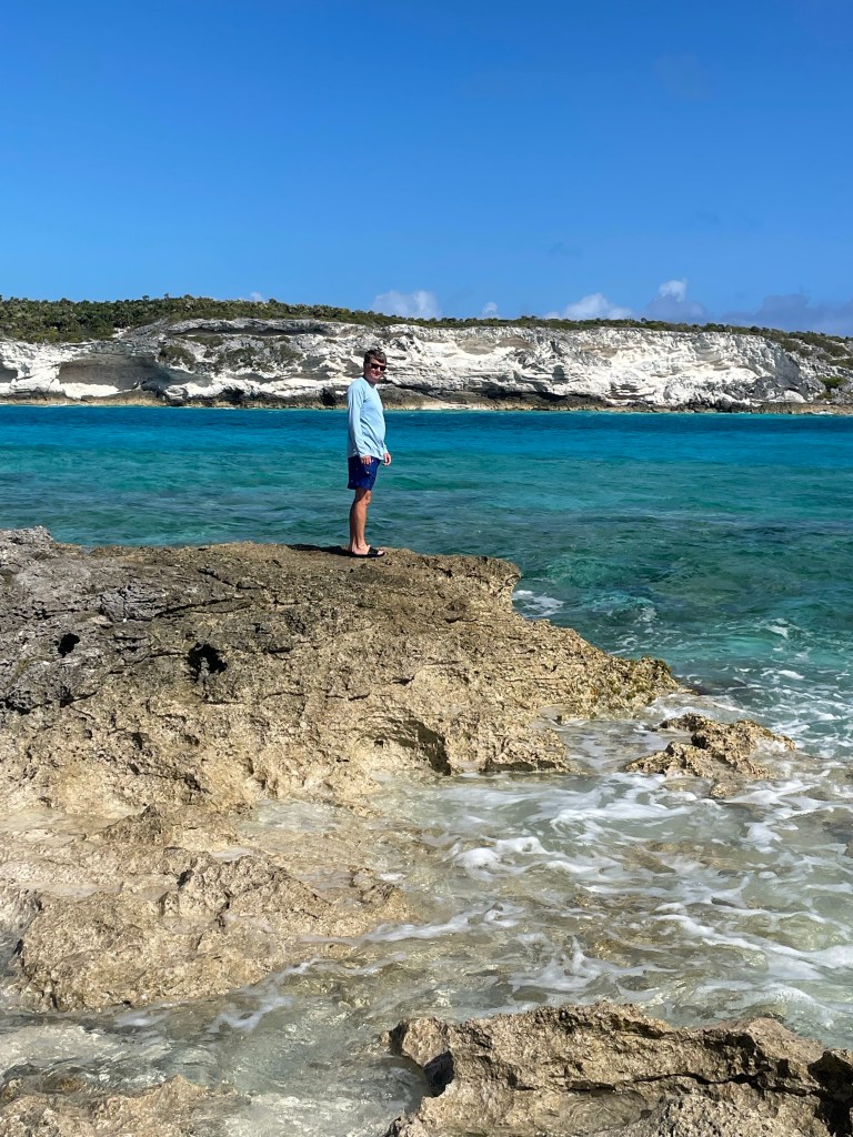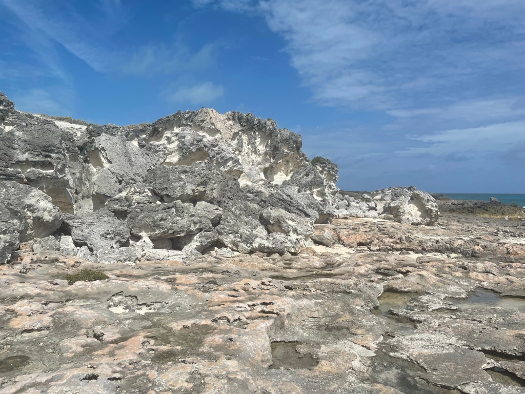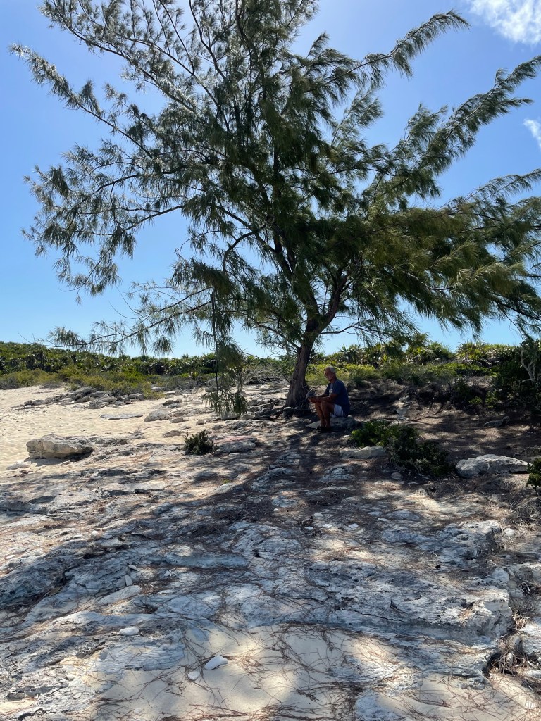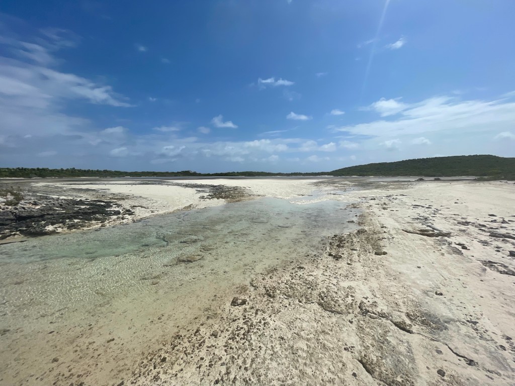 Exploration number 1 was on O’Brien Cay. We took the dinghy to the north end of the island and walked across the island to the sound side. There were no beaches on that side but some very interesting rocks! From a second beach (just beside the first one we stopped at) we discovered an interior pond that you really couldn’t see from the water. It was super cool and we walked all the way around it. We were here at low tide so it was very easy to get in and out.