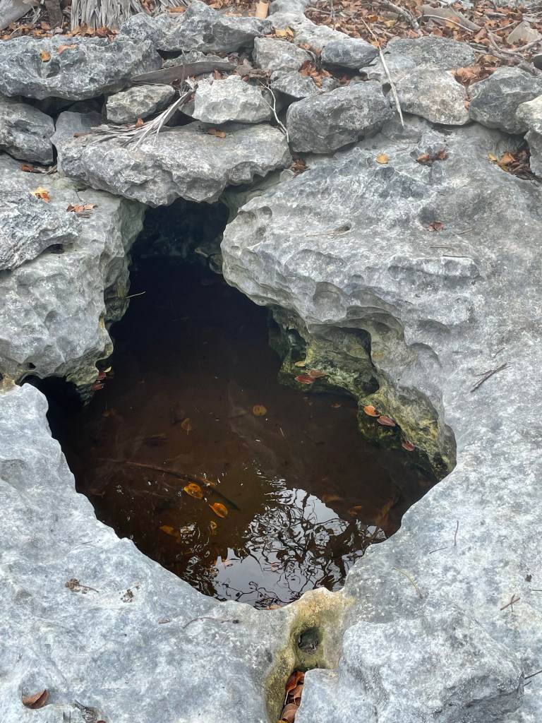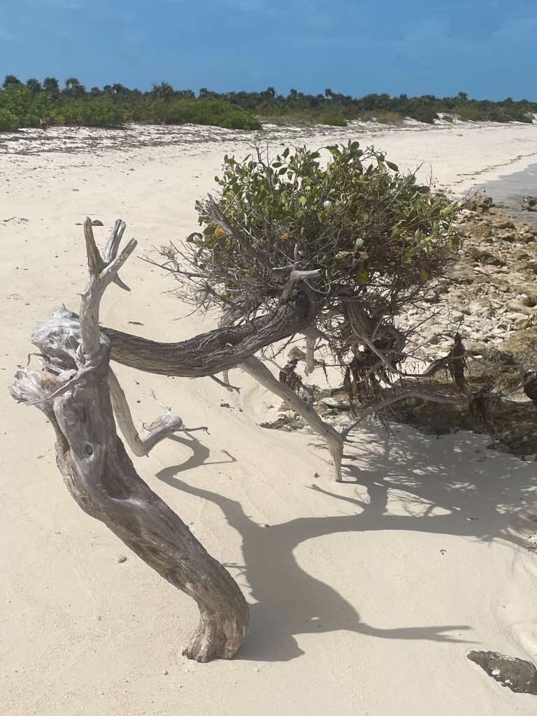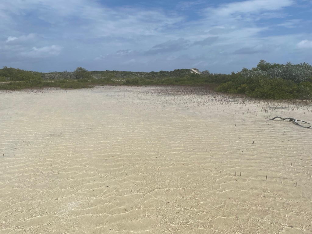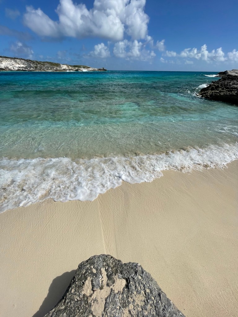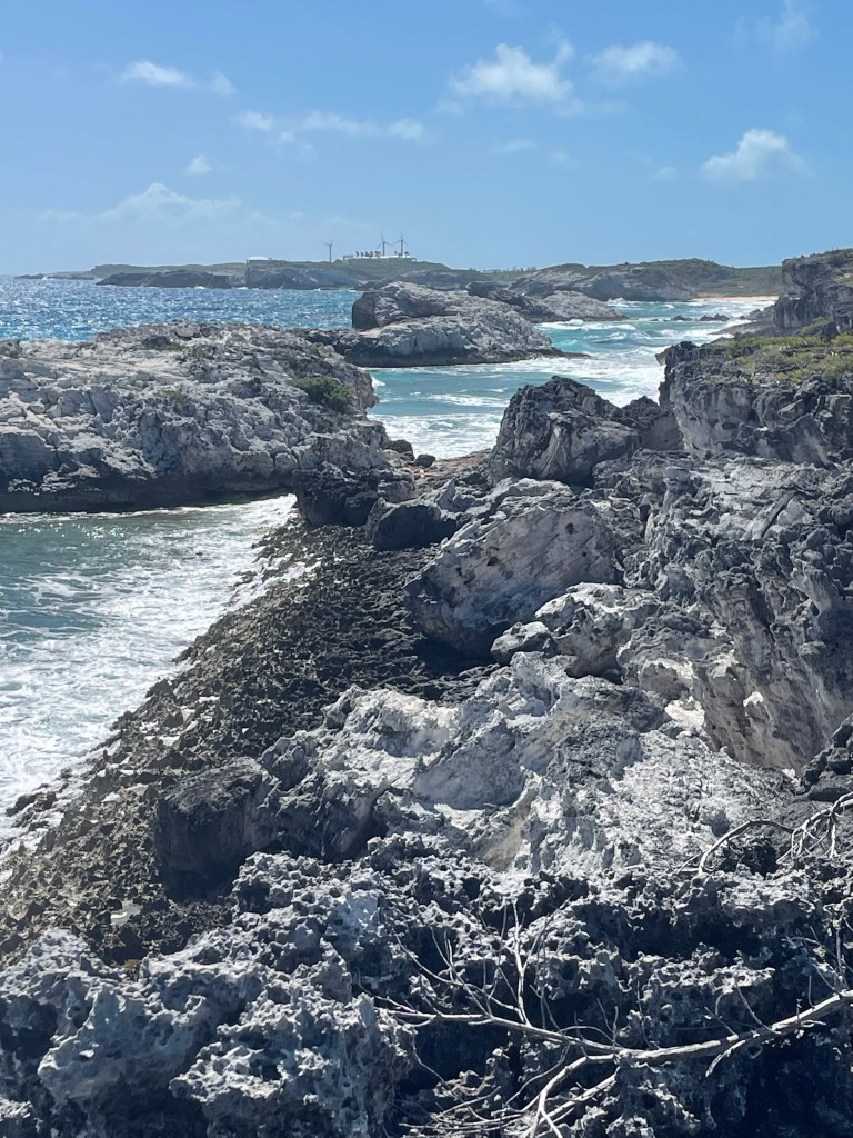 Exploration number 1 was on O’Brien Cay. We took the dinghy to the north end of the island and walked across the island to the sound side. There were no beaches on that side but some very interesting rocks! From a second beach (just beside the first one we stopped at) we discovered an interior pond that you really couldn’t see from the water. It was super cool and we walked all the way around it. We were here at low tide so it was very easy to get in and out.